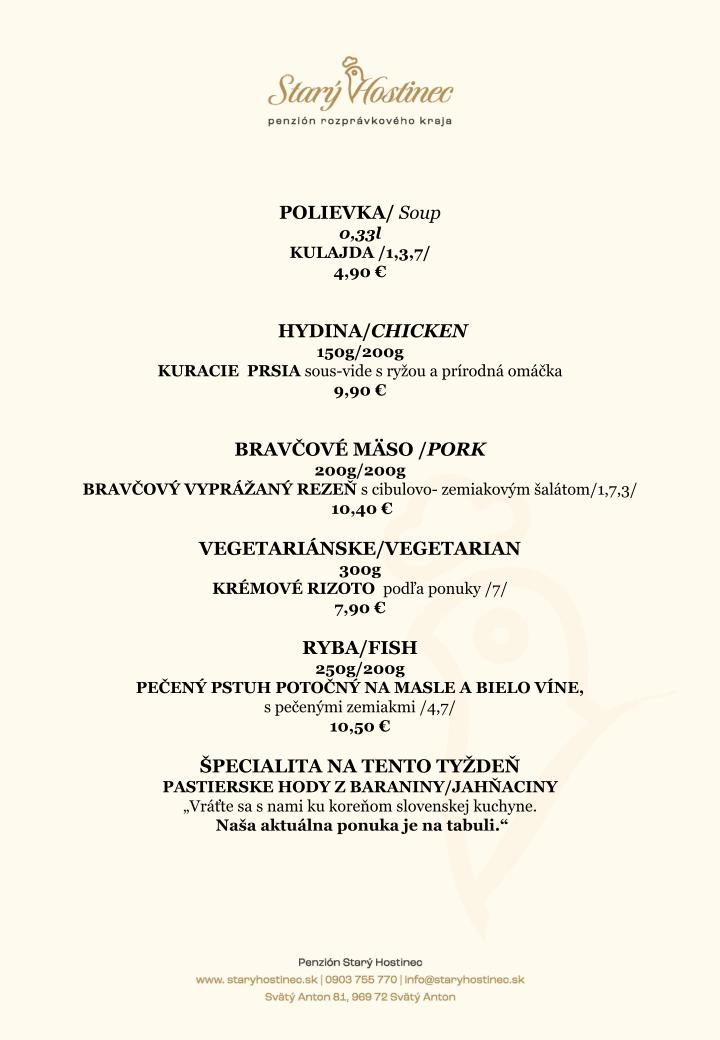 Starý Hostinec je miestom pre romantický pobyt, pokojný víkendový pobyt, aj návrat k jednoduchosti, ktorú dnes tak často hľadáme.