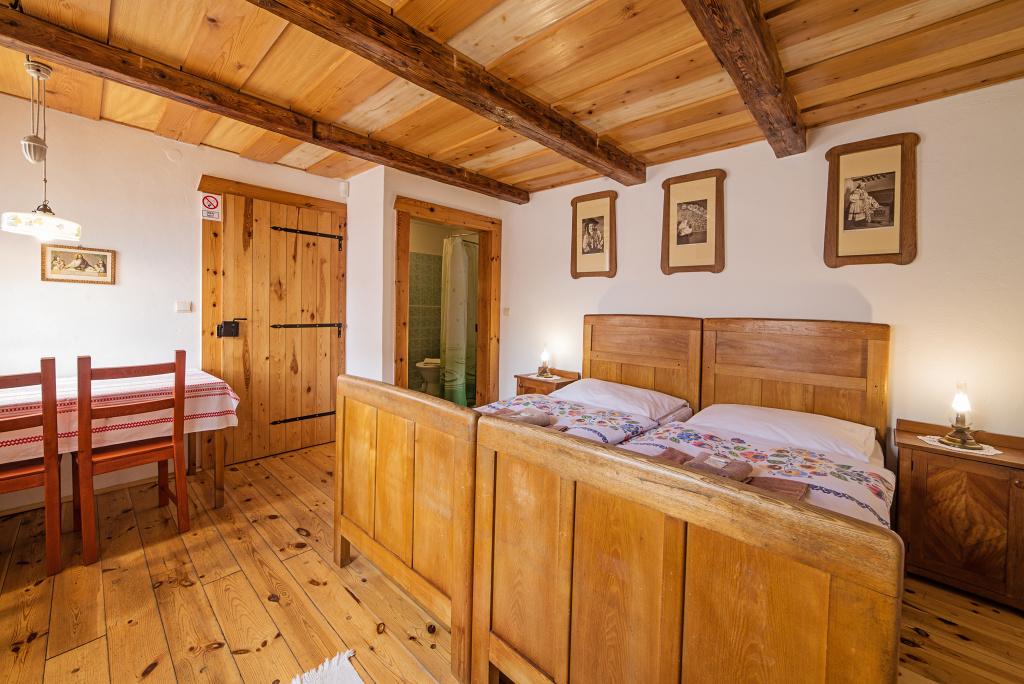 Atmosféra: Jedinečná izba so samostatným vchodom z malého dvora a posedením priamo pred izbou pod storočným orechom. Je bezbariérová. Celé zariadenie vrátane kúpeľne je prístupné aj s invalidným vozíkom.
