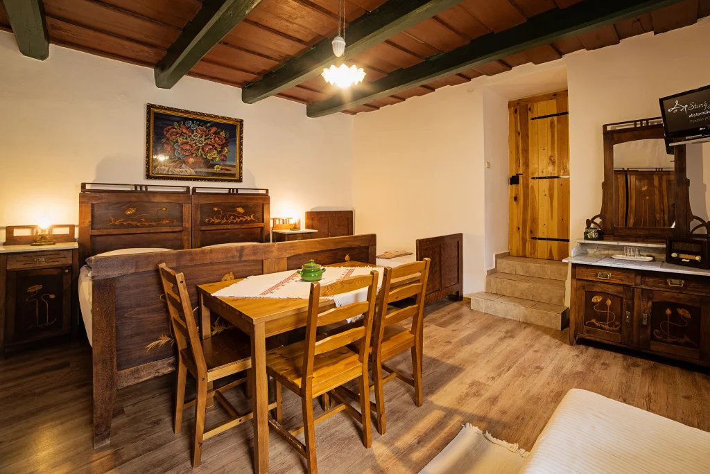 Atmosféra: Izba na prízemí je praktická pre rodiny, no najmä pre seniorov. Okná smerujú do dvora a veľkou výhodou je stavebne oddelená chodba, vhodná aj na ubytovanie vašich štvornohých priateľov.
