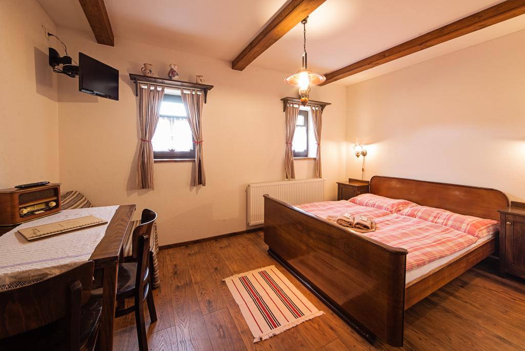 Atmosféra: Izba v najnovšej časti penziónu je skvelá, ak chcete mať všetko „po ruke“. Vstup je možný samostatným vchodom aj cez reštauráciu. Bonusom je, že sa nachádza nad spoločenskou sálou a cez ňu sa dostanete na terasu spojenú s detským ihriskom.