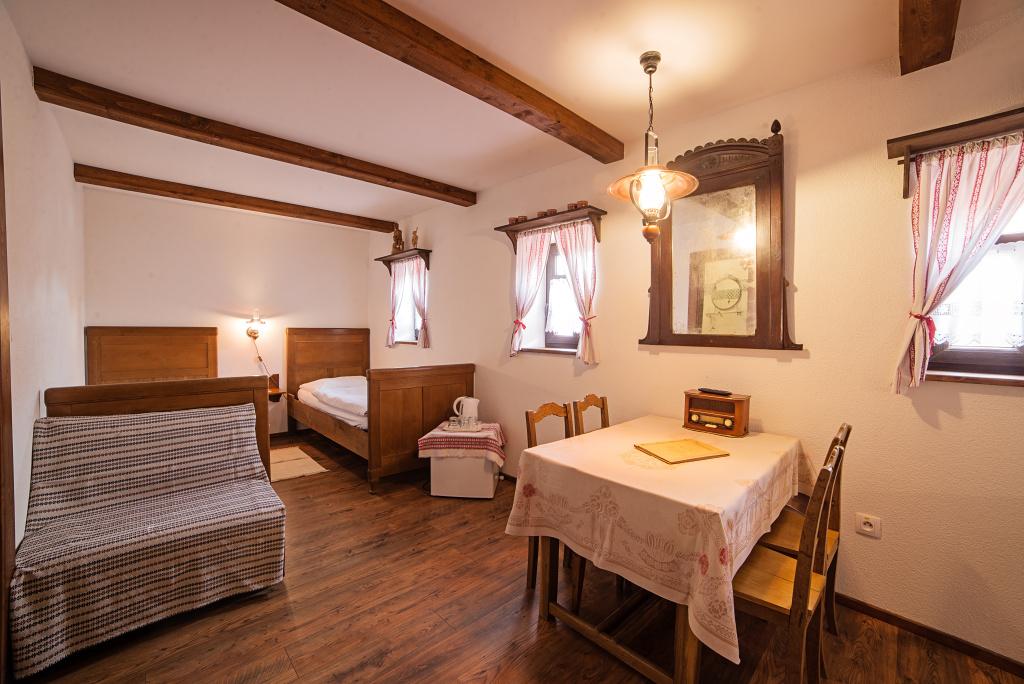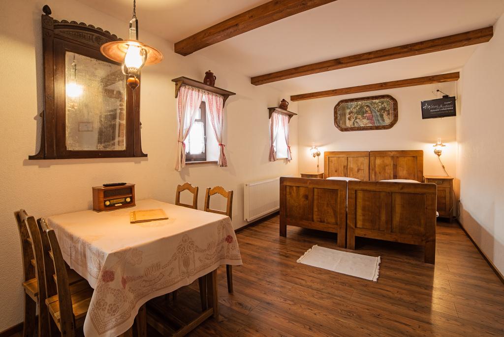 Atmosféra: Izba pre rodiny, ktoré chcú pohodlie a priestor. Má 4 pevné lôžka a kúpeľňu s vaňou. Ideálne po celodennom objavovaní Banskej Štiavnice a okolia, keď si chcete dopriať pomalý večer.